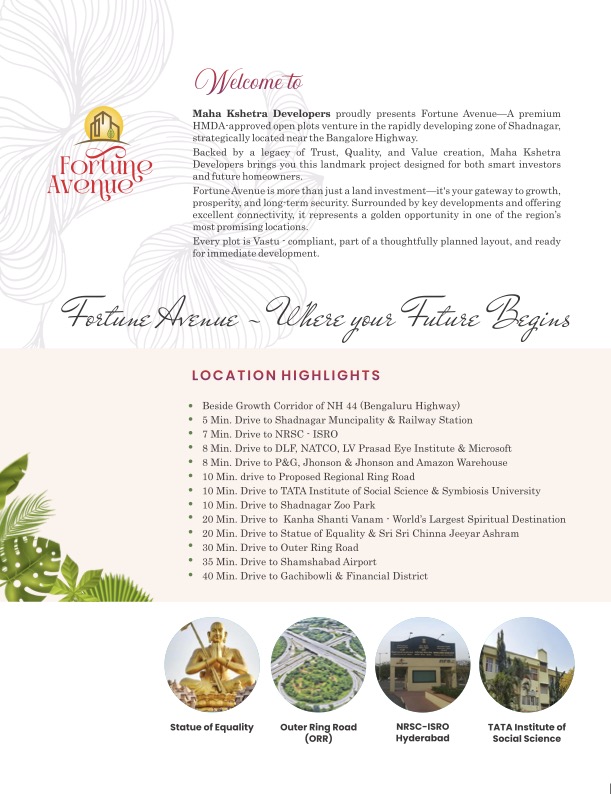 Starting Plot Size 165 Sq.yds up to 277 Sq.yds, HMDA, and RERA Approved.